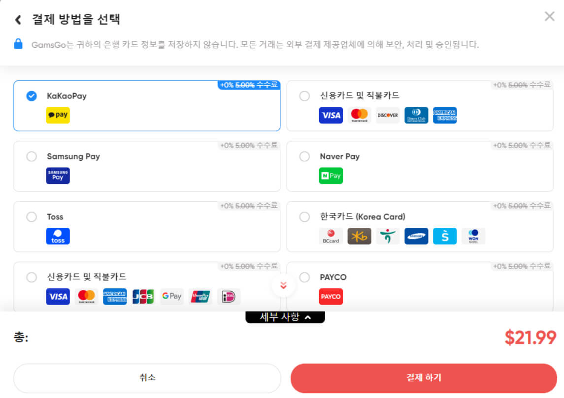 원하시는 결제 수단을 선택해 결제를 진행해 주세요. GamsGo에서는 매우 합리적인 가격으로 구독을 이용할 수 있습니다. - 저렴한 비용으로 이용하기
