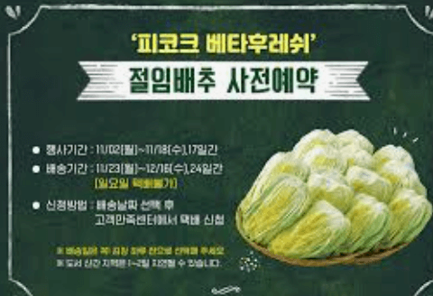 사전예약은 10월 24일부터 11월 3일까지 진행됩니다. 예약 방법은 간단합니다. 농협 하나로마트의 공식 웹사이트나 모바일 앱을 통해 예약할 수 있으며, 전화 예약도 가능합니다. 예약 시 필요한 정보는 이름, 연락처, 수령 장소 등입니다. 예약 후에는 확인 문자를 받게 되며, 이를 통해 예약이 완료되었음을 확인할 수 있습니다.